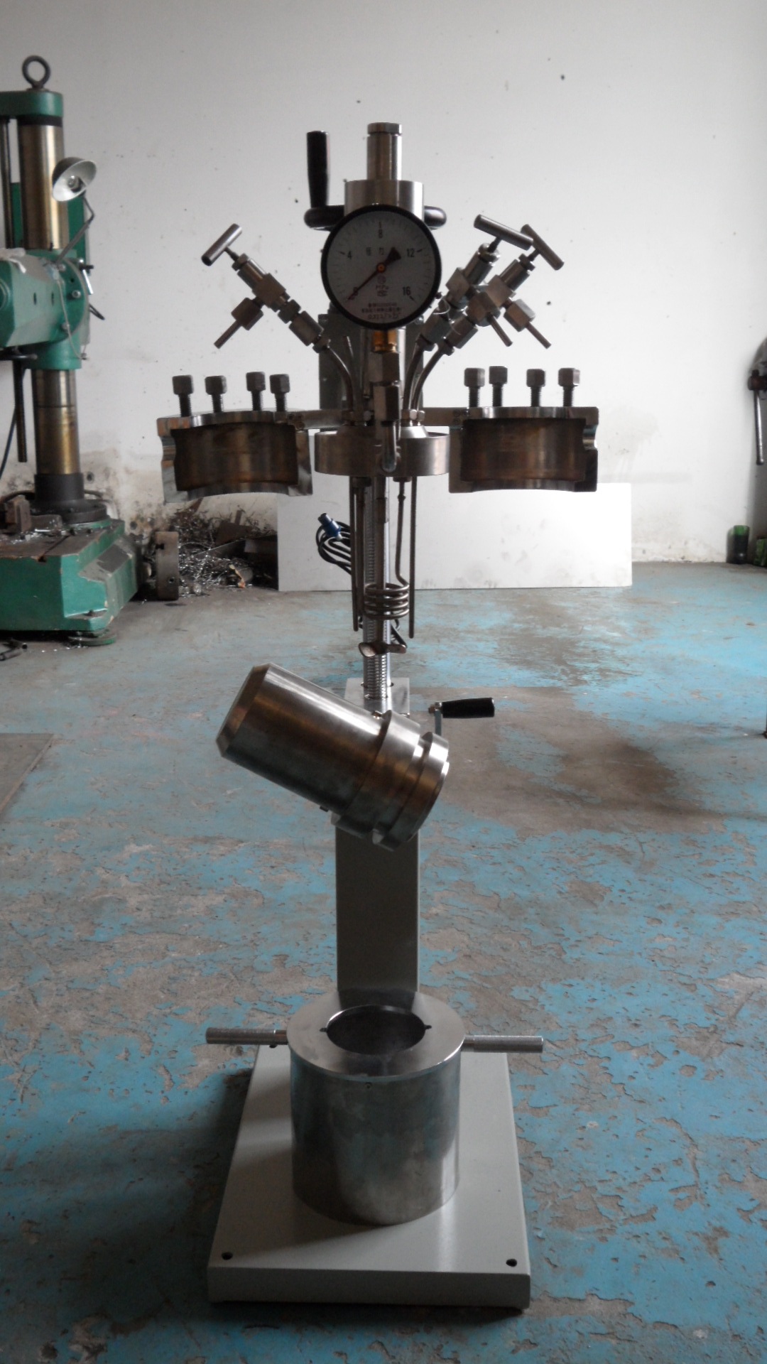 該系列反應(yīng)釜是我公司近年來研制的新產(chǎn)品,它綜合了國內(nèi)外高壓釜的優(yōu)點,具有外型美觀、結(jié)構(gòu)緊湊、操作方便等特點,釜體與釜蓋間采用快開式卡環(huán)是法蘭聯(lián)接,靠擰緊8個螺栓即可將釜蓋與釜體密封,上釜及開釜時間短,方便操作;通過旋轉(zhuǎn)設(shè)備上的升降手輪帶動絲桿轉(zhuǎn)動將釜體升起,支架上設(shè)有翻轉(zhuǎn)手柄,轉(zhuǎn)動手柄可將釜體繞水平線旋轉(zhuǎn)120度,便于倒料及清洗釜內(nèi)殘物。該反應(yīng)釜投放市場以來,深受廣大科研人員的喜愛,是目前國內(nèi)外試驗室最為理想的高壓化學(xué)反應(yīng)試驗裝置。